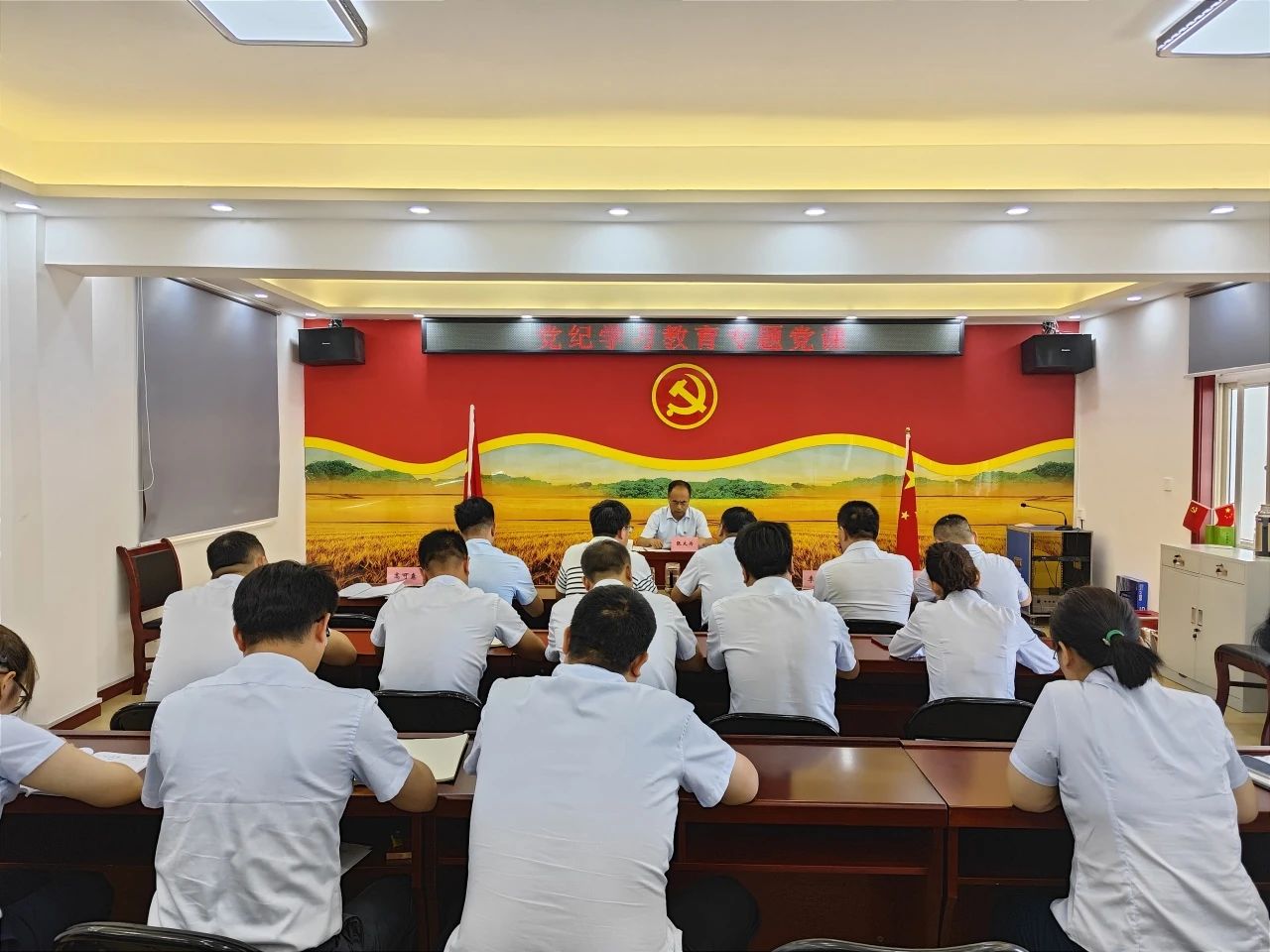 座談會(huì)上,張大為首先聽取了糧油市場(chǎng)黨紀(jì)學(xué)習(xí)教育工作開展情況匯報(bào),詳細(xì)了解了上半年市場(chǎng)在招商運(yùn)營(yíng)、貿(mào)易合作、安全生產(chǎn)等方面工作進(jìn)展,分析研判了當(dāng)前市場(chǎng)發(fā)展形勢(shì)并提出希望。隨后,張大為從加強(qiáng)黨的紀(jì)律教育的重要性、學(xué)深悟透黨的創(chuàng)新理論和法規(guī)條例、自覺(jué)學(xué)紀(jì)知紀(jì)明紀(jì)守紀(jì)以及奮力開創(chuàng)集團(tuán)和糧油市場(chǎng)事業(yè)發(fā)展新局面等方面為與會(huì)人員作了專題授課。