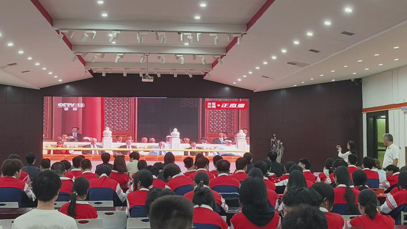 9月3日,物資職校200余名師生代表集中收看紀(jì)念大會(huì)實(shí)況直播,銘記歷史、緬懷先烈。習(xí)近平總書(shū)記的重要講話令學(xué)生備受鼓舞,增強(qiáng)了師生的民族自豪感與集體凝聚力,讓大家更清晰認(rèn)識(shí)到自身責(zé)任與使命。全體教師熱情高昂的表示將傳承弘揚(yáng)愛(ài)國(guó)主義精神,把抗戰(zhàn)精神融入課堂,牢記育人使命,為強(qiáng)國(guó)建設(shè)、民族復(fù)興作貢獻(xiàn)。廣大學(xué)生激情澎湃的表達(dá),將以先輩為榜樣,刻苦學(xué)習(xí)、堅(jiān)定信念,努力成長(zhǎng)為擔(dān)當(dāng)民族復(fù)興大任的時(shí)代新人。